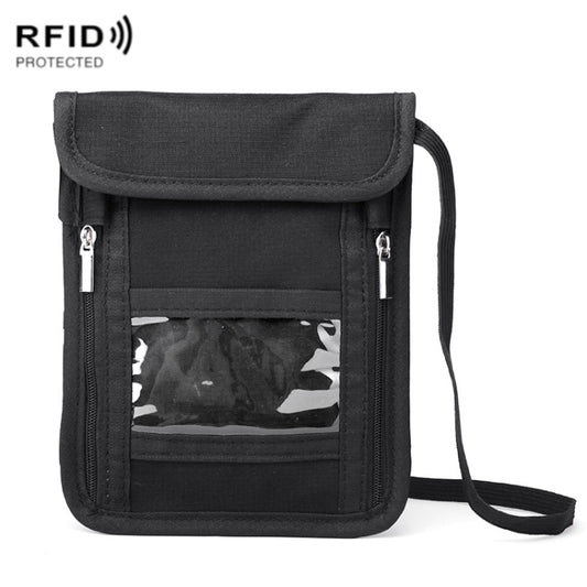 ZD-WM-06 RFID Hanging Neck Bag Passport Bag Anti-scanning Anti-magnetic Messenger ID Bag(Black)