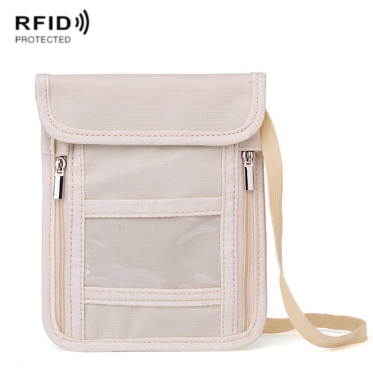 ZD-WM-06 RFID Hanging Neck Bag Passport Bag Anti-scanning Anti-magnetic Messenger ID Bag(Beige Yellow)
