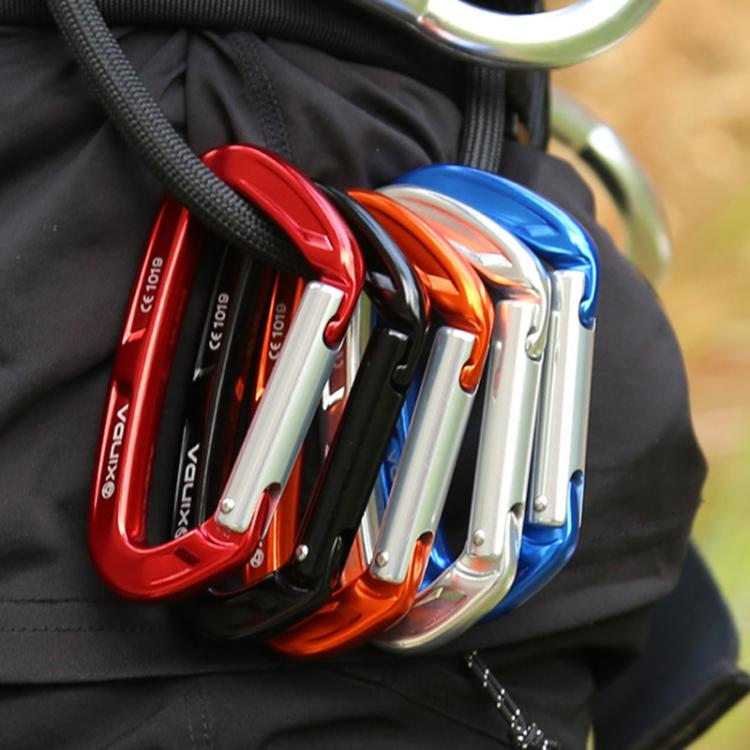 7. One end of the climbing quick-draw is designed with a straight door, which is mainly used for connecting the protective pads on the rock wall when climbing the rock wall; the fixed end adopts a curved door quick-draw