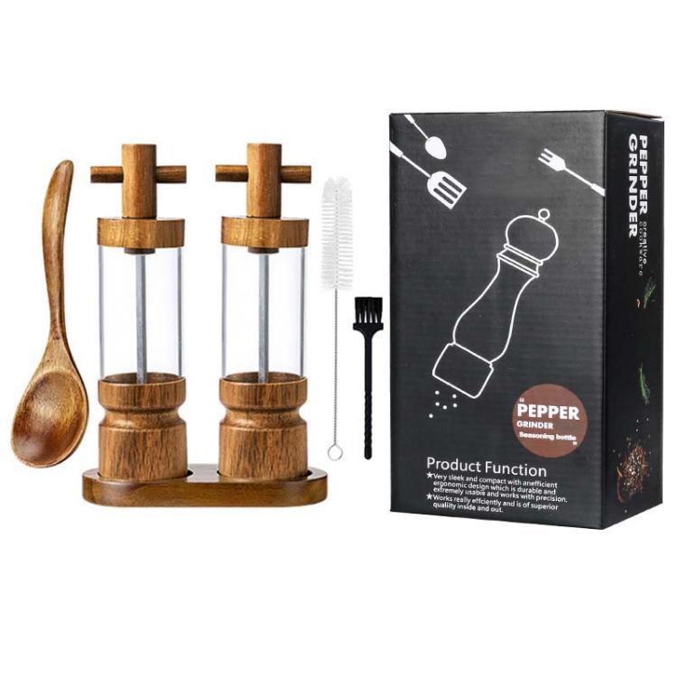 7 inch Manual Black Pepper Wood Grinder Transparent Acrylic Pepper Seasoning Bottle, Spec: Double+Base+Spoon+Steel Brush+Black Brush