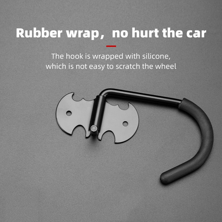 4. Features: high-strength steel, reinforced thick base, stable, firm and safe, not easy to deform, 90-degree movable hook, convenient to pick up the car, saving space, rubber-wrapped at the hook, not easy to scratch the wheel, painted on the surface, not easy to rust, Durable