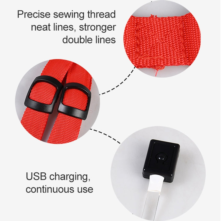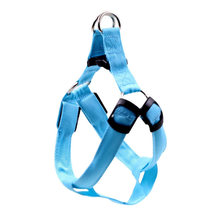 حزام صدر مزدوج الجوانب مزود بإضاءة LED للحيوانات الأليفة من النايلون للقطط والكلاب، الحجم: M (أزرق)