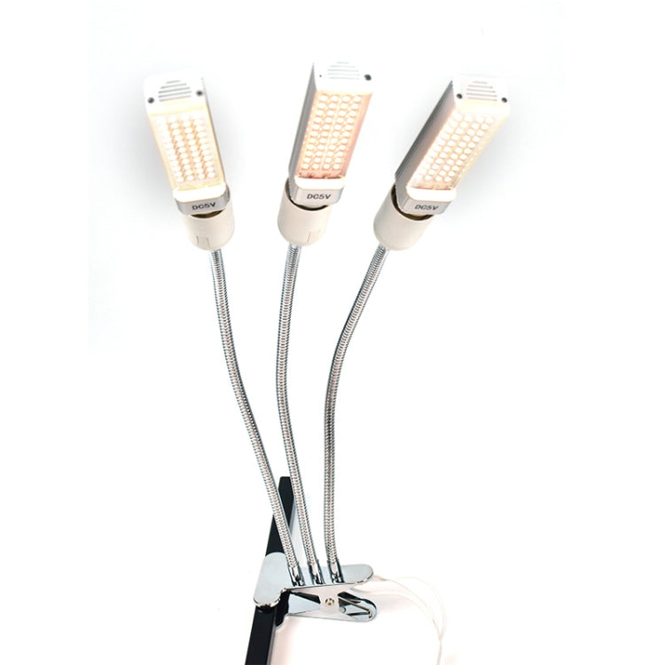 E27 Clip All-aluminum Housing Plant Growth Fill Light,US Plug, Specification:3 Head(White)