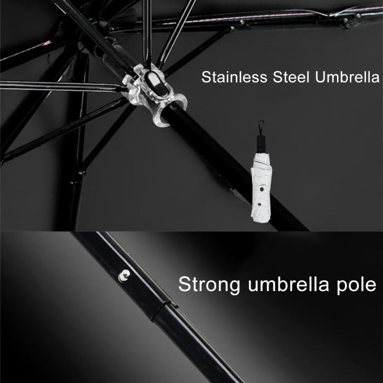 Five Folding Ultralight Umbrella, Women Waterproof Anti-UV (Black Feather Pattern)