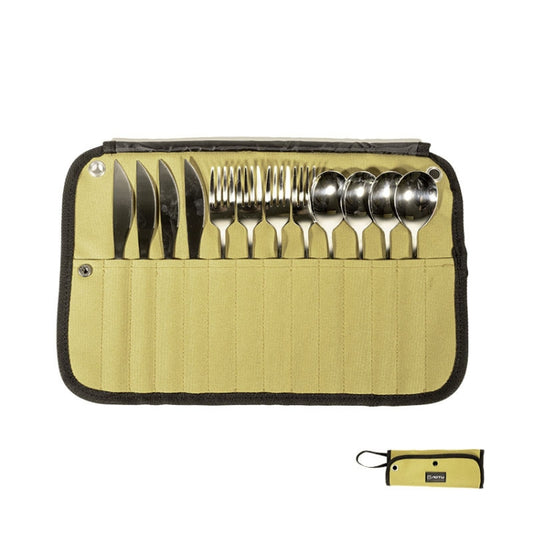 AOTU AT6471 12pcs /Set Outdoor 304 Stainless Steel Camping Cutlery Set With Storage Bag, Color: With Dinner Knife Mud Color