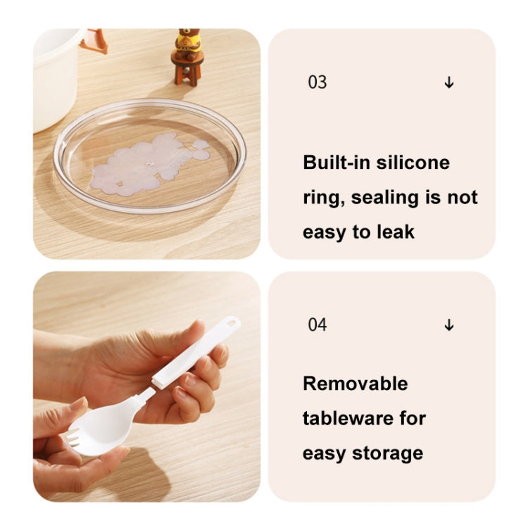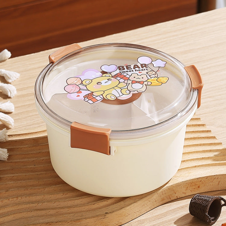 1100ml Cartoon Round Microwaveable Bento Box Outdoor Student Lunch Box(Bear Brown)