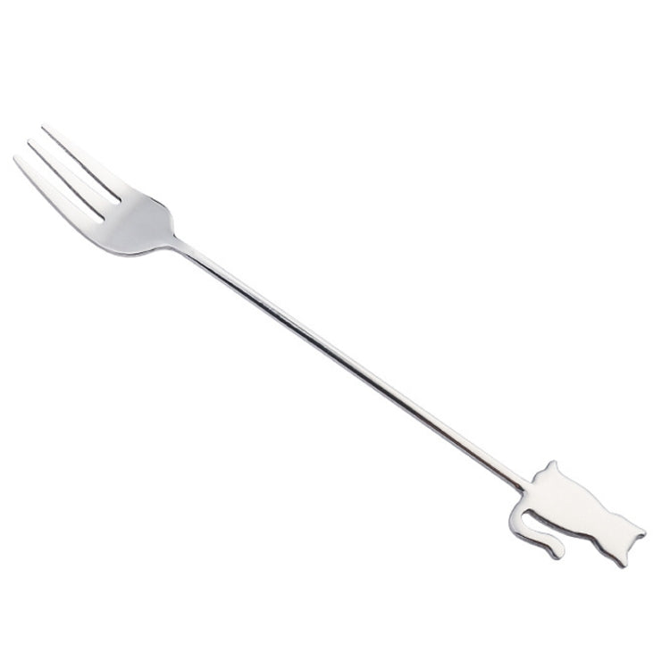 304 Stainless Steel Cartoon Pet Stirring Spoon Fork Fruit Fork Dessert Scoop, Style: Back Cat Fork (Silver)