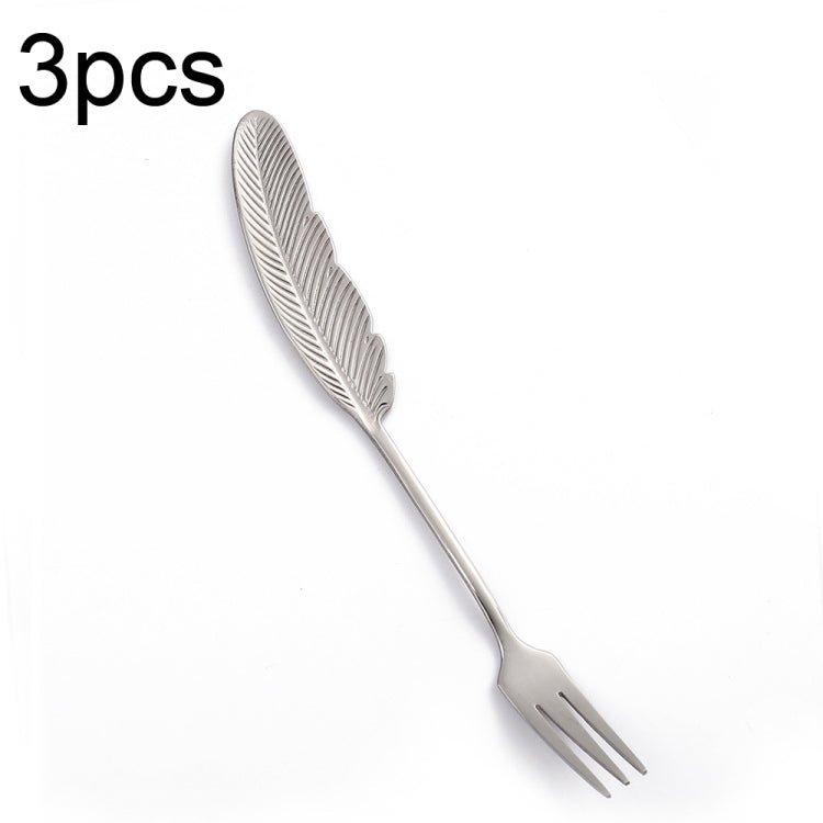 304 Stainless Steel Feather Spoon Fork Literary Tableware,Style: 3pcs Fork-True Color