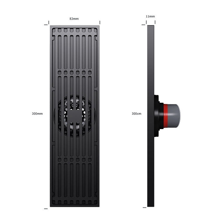 8x30cm Large Displacement Deodorant Straight Rectangular All Copper Floor Drain(Black)