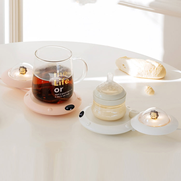 Cartoon Heated Cup Pad UFO Insulated And Constant Temperature Coaster with Night Light, US Plug(White)