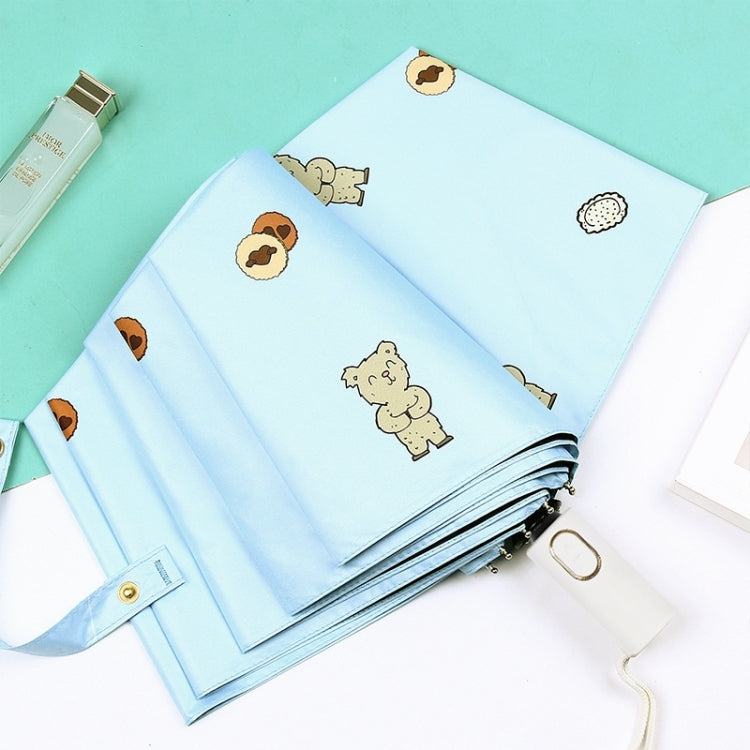Children Sweet Vinyl Sunscreen Umbrella Tri-fold Student Cartoon Folding Umbrella, Style:Automatic(Sky Blue)