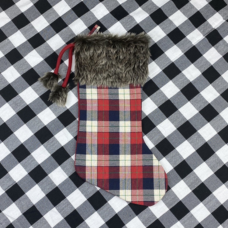 Christmas Tree Pendant Christmas Ornaments Christmas Socks Gingham Gift Bag(Dark)