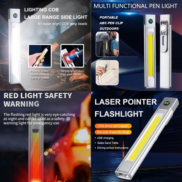 DXC-512 Multifunctional Pen Lamp Work Flashlight with Red Laser Light(Silver)