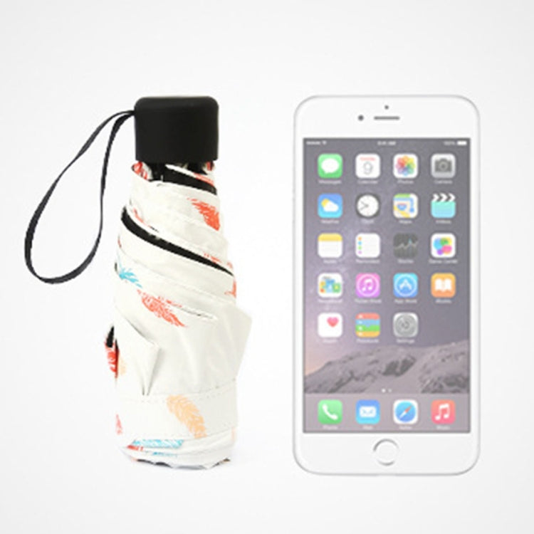 Five Folding Ultralight Umbrella, Women Waterproof Anti-UV (White Feather Pattern)