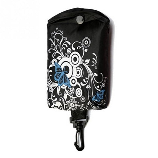 Foldable Shopping Bag Butterfly Flower Oxford Fabric Shoulder Bag Reusable Tote Bag(Black)