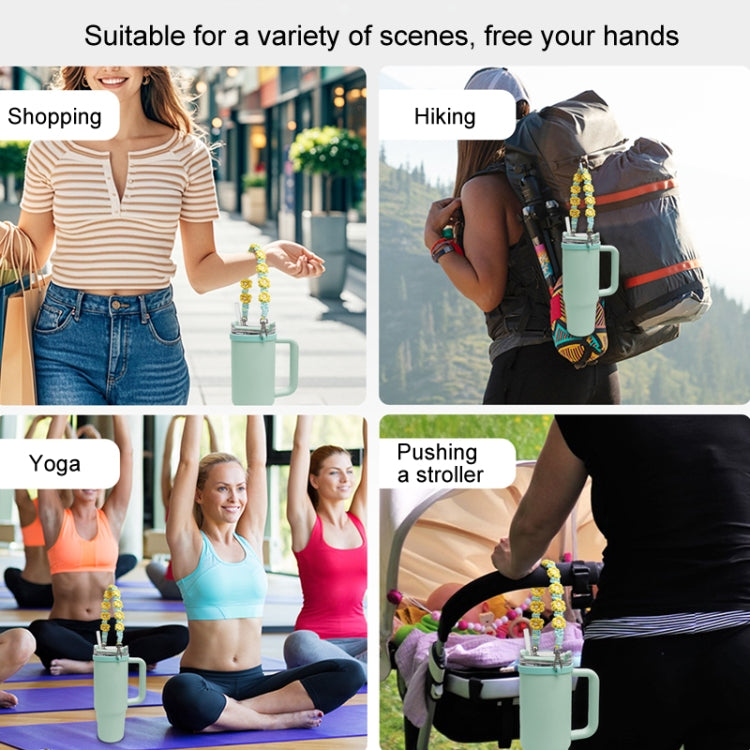 For 16-40oz Stanley Mug Lanyard Silicone Loop Boho Daisy Cute Flower Hand-Woven Mug Cover(Green)
