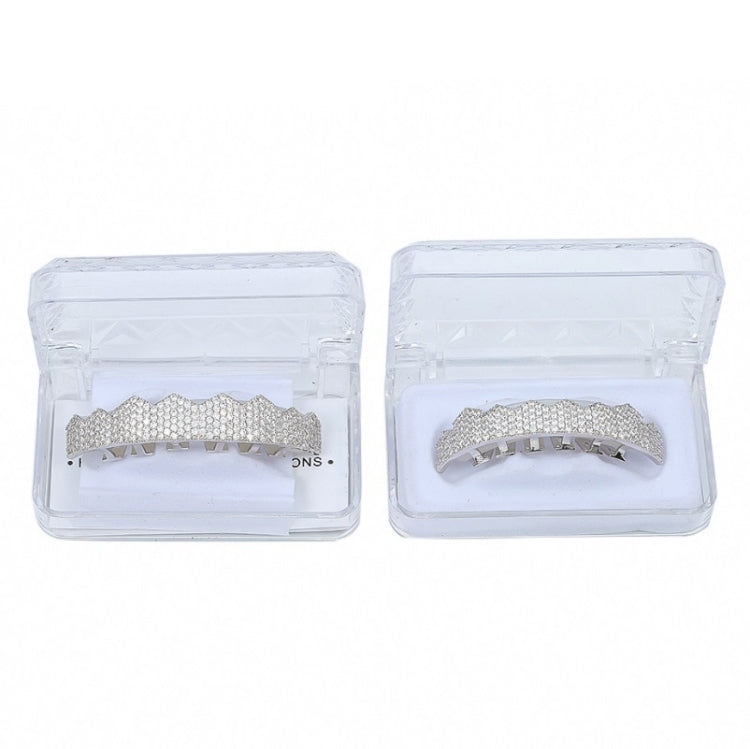 Hip-HopGold-Plated Micro-Inlaid Zircon 8 Gold Braces, Colour: Silver Upper Teeth