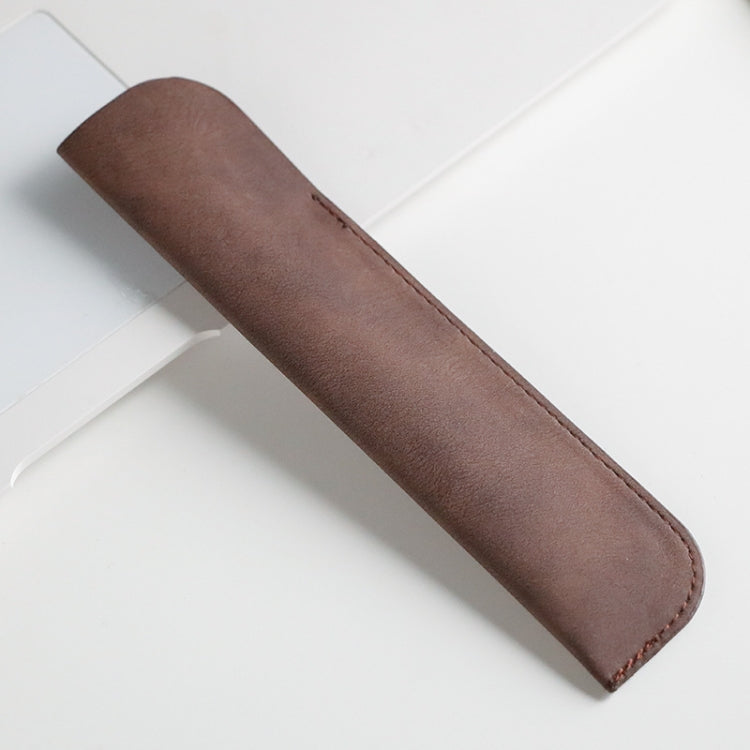 Leather Pencil Bag Simple Portable PU Stationery Protective Shell(Brown)