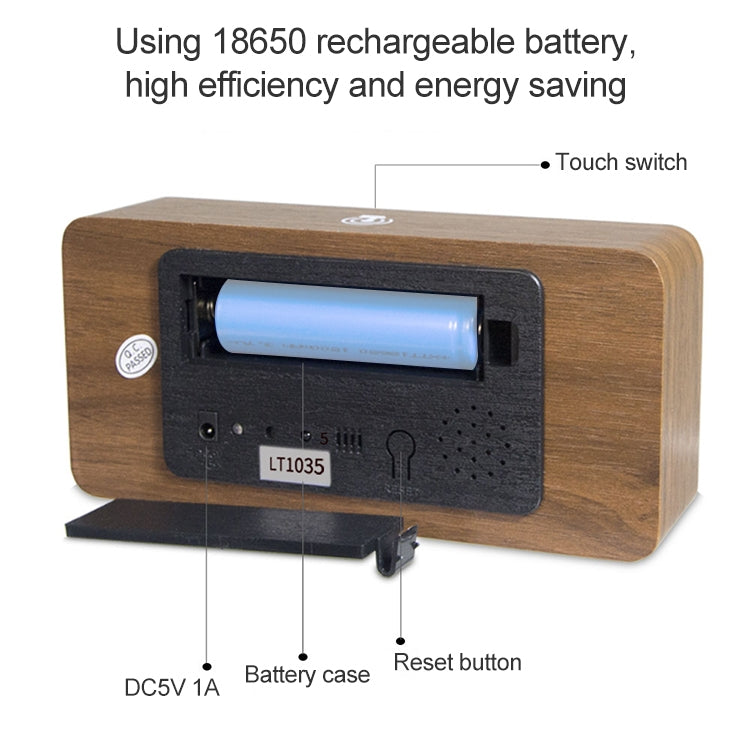 LT-1035 LED Display Digital APP Smart Alarm Clock(Green Light Black Wood)