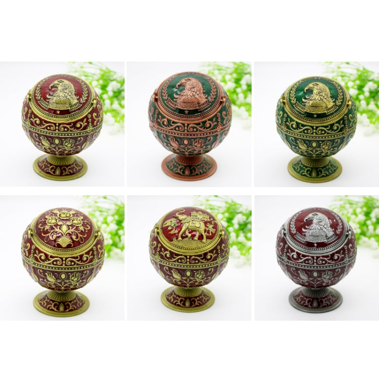 Metal Globe Ashtray With Lid Holiday Gift Tea Table Decoration(Wine Red Elephant)