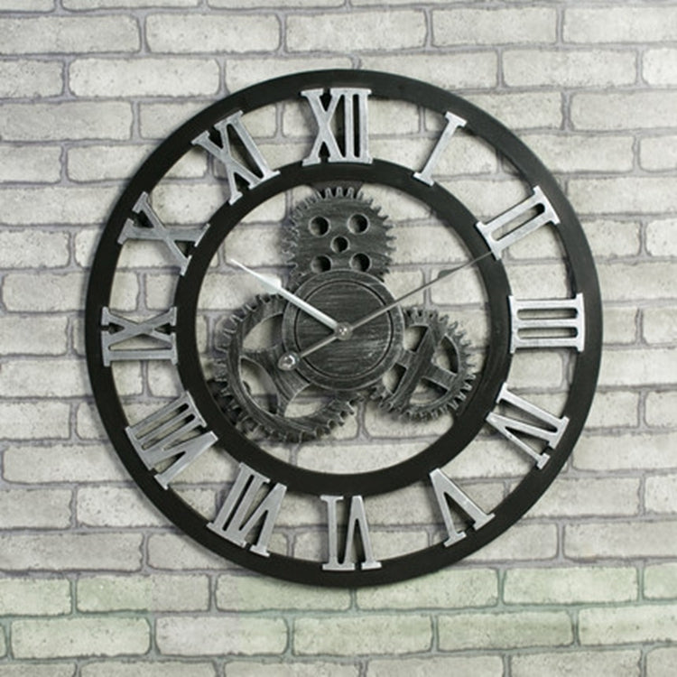 Originality American Industrial Style Wood Vintage Old Gear Wall Clock, Diameter: 50cm (Silver)