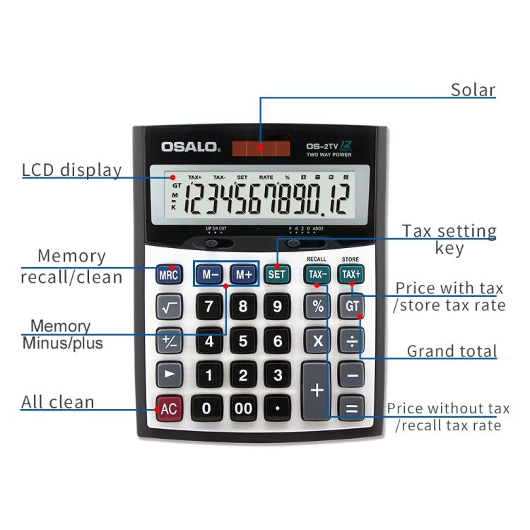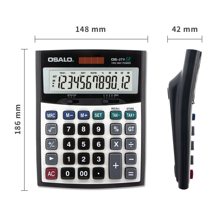 OSALO OS-2TV 12 Digits Desktop Tax Rate Calculator Solar Energy Dual Power Calculator