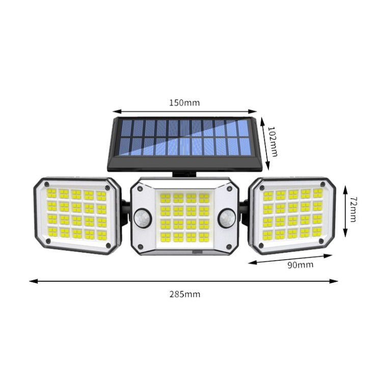 Outdoor Triple Head 224LEDs Dual Sensor Solar Wall Light Rotating Body Sensor Light Garden Home Lighting, Style: Integral