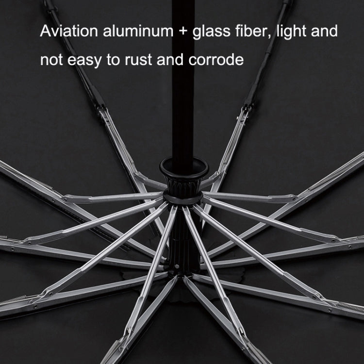 PARACHASE Solid Wood Bending Handle 10 Bone Three Fold Automatic Umbrella(Grey)
