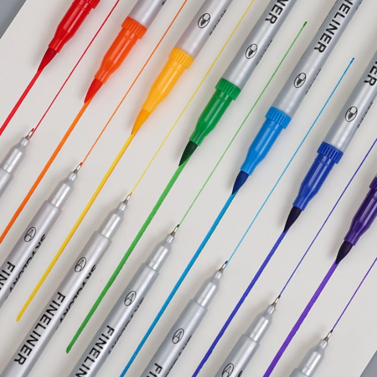 Skyglory Children Drawing Double-Headed Hook Line Pen Art Soft-Headed Watercolor Pen,Specification 12 Color Silver Pole