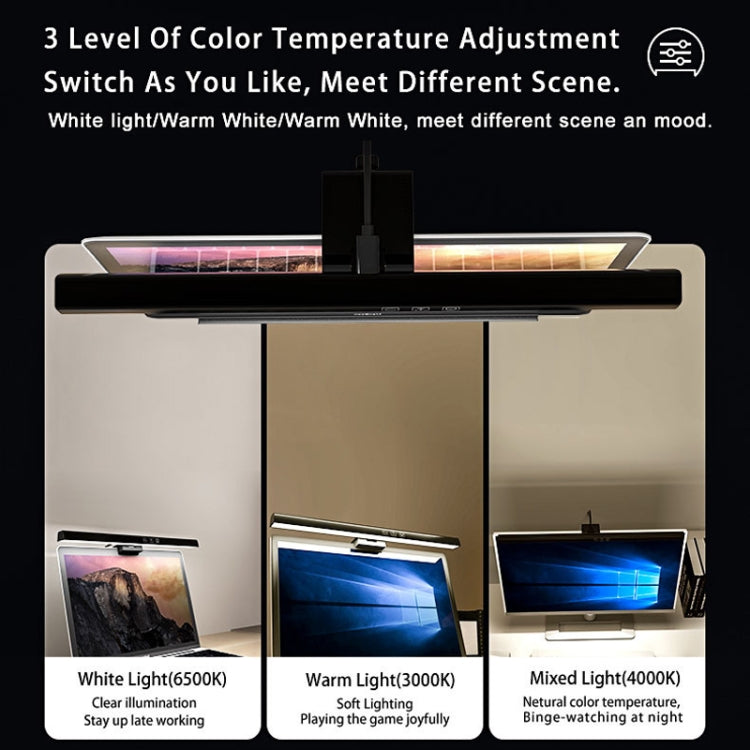 TB-30SA 33cm Timing Dimming Display Asymmetric Working Eye Care LED Desk Lamp Laptop Screen Hanging Light(White)