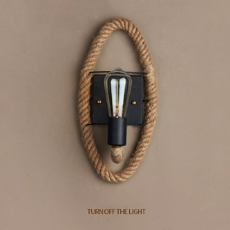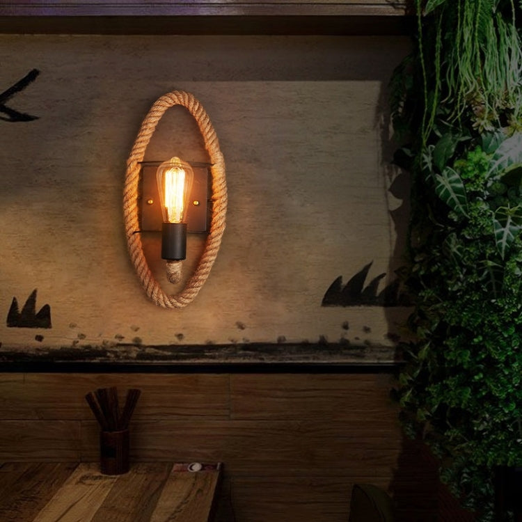 Vintage Hemp Rope Edison Light Bulb Wrought Iron Wall Lamp without Bulb(Oval)