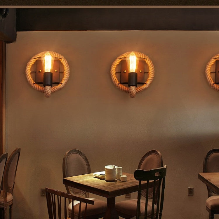 Vintage Hemp Rope Edison Light Bulb Wrought Iron Wall Lamp without Bulb(Round)