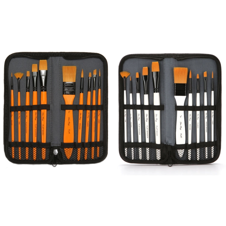 ZHU TING 10 In 1 Wooden Pole Nylon Wool Watercolor Pen And Board Brush Fan Shaped Painting Pen Set With Cloth BagZHUTING(White Rod)