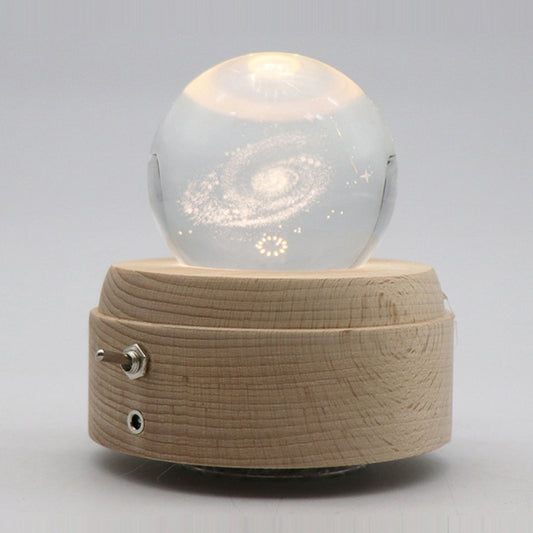 Girl Bedside Lamp Crystal Ball Wooden Base Music Box Charging Glow Rotating Night Light, Random Music(Milky Way)