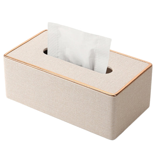 Home Decor Tissue Box Cover Desktop Gold Rim Faux Leather Napkin Holder Toilet Paper Storage Box, Size: Large(Beige)