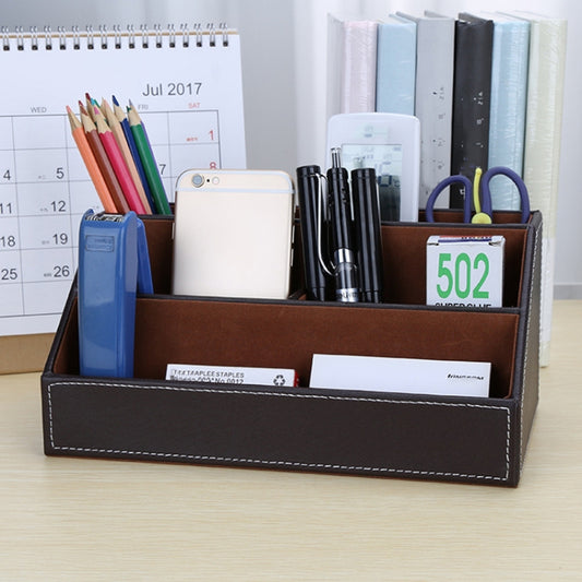 Desktop Stationery Box Multi-functional PU Leather Home Compartment Sundry Organizer Storage Box, Size: 24x13.5x12cm(Coffee)