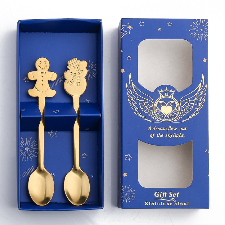 2pcs /Pack Christmas Stainless Steel Spoon Tableware Gift Set, Color: Blue Box Golden Gingerbread+Snowman