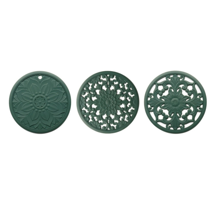 3 in 1 Hollow Flower Silicone Heat Insulation Pad Anti-Scalding Pot Bowl Pad Set(Green)