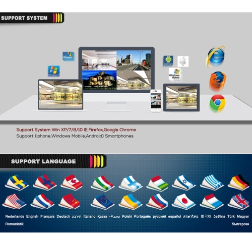 8. الشبكة: خدمات شبكة قوية (تدعم DHCP، PPPOE، FTP، DNS، DDNS، البريد الإلكتروني، عمليات بحث IP وما إلى ذلك) ودعم مثالي (WEB، Client، SDK)، من السهل تحقيق التشغيل البيني.