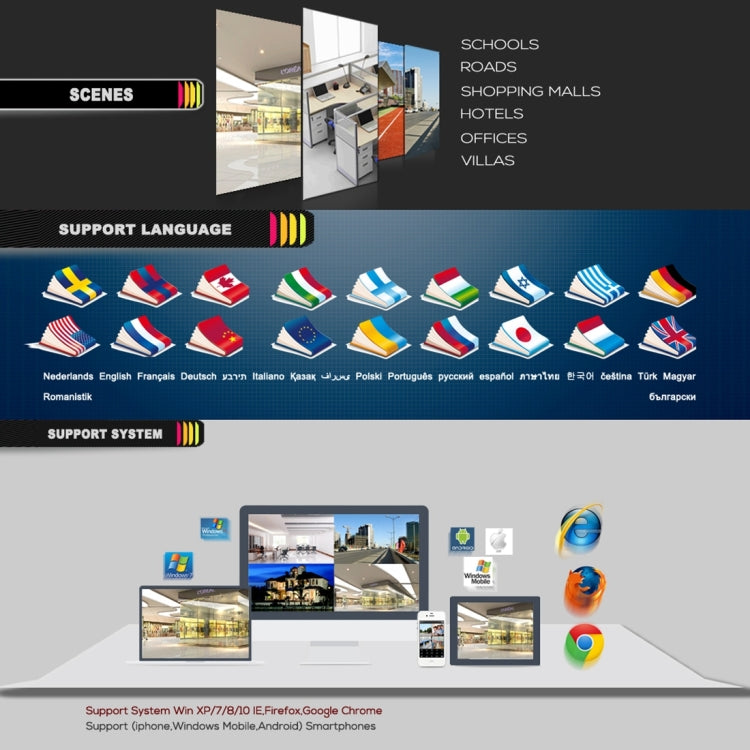 3. Compression algorithm ideal:H.264+++ compression algorithm,50% decrease of stream due to advanced space-time filtering technology.