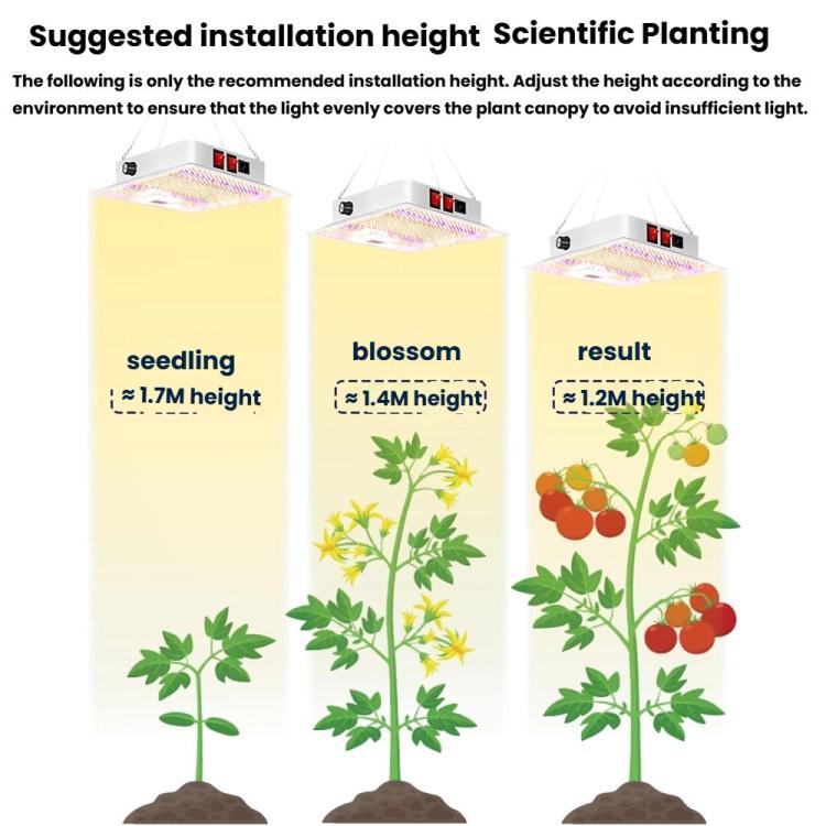 7. Adjust the installation height according to the environment to ensure even light coverage throughout the plant canopy and avoid light shortages