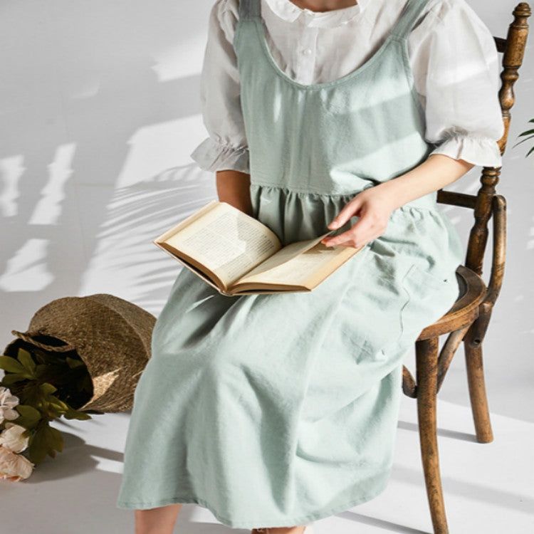 High Waist Cotton Linen Solid Color Apron(Mint Color)
