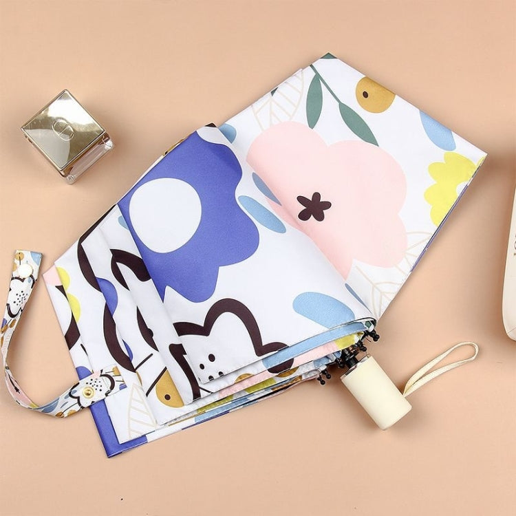 Illustration Folding Black Glue Sun Umbrella Tri-fold Sunny Rain Umbrella, Style:Manual(Paint Spring)