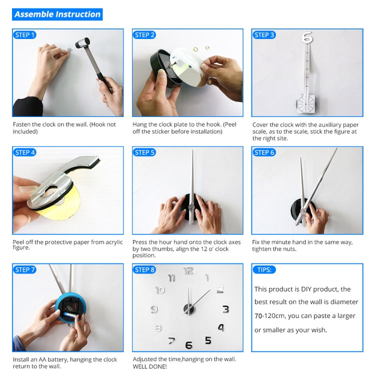 M030 India Digital Hanging Clock Home Decoration DIY Acrylic Clock(Silver)