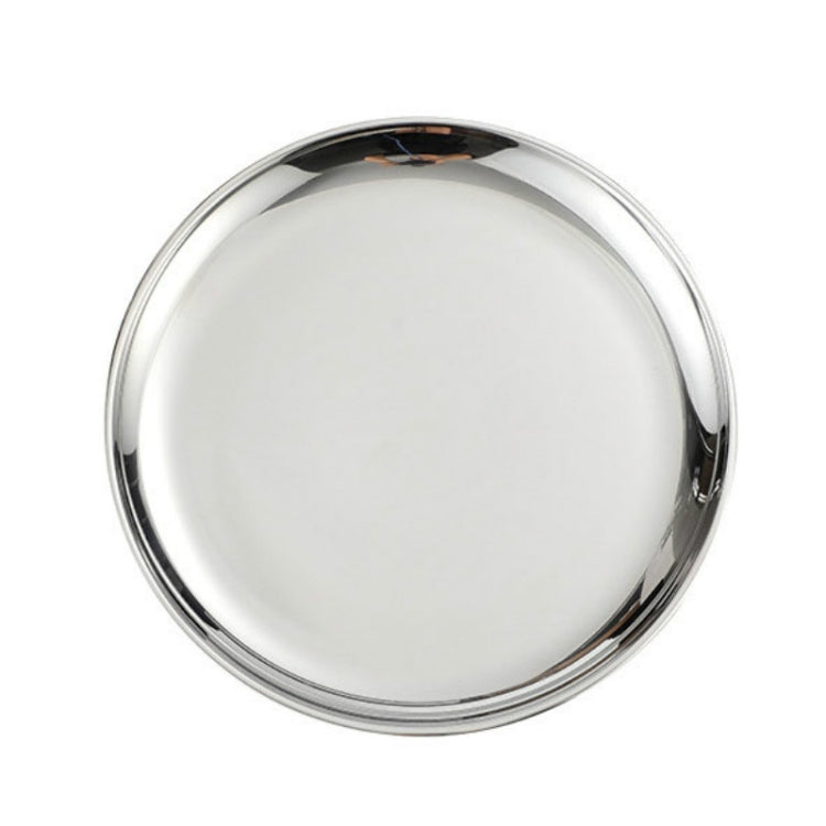 Stainless Steel Thickened Round Plate Cafe Tray Fruit Cake Plate Bone Plate Dish Shallow Plate, Diameter: 14cm, Style: Bright Mirror Silver