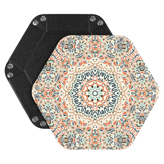 صينية تخزين من البولي يوريثان لسطح المكتب سداسية الشكل، الحجم: 7 بوصة (برتقالي بوهيمي)