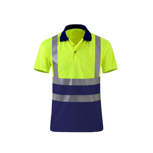 Reflective Quick-drying T-shirt Lapel Short-sleeved Safety Work Shirt, Size: XL(Fluorescent +Navy Blue)