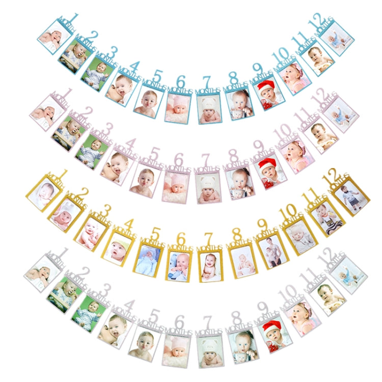 1St Baby 12 Months Birthday Pull Flag Photo Wall Slogan Banner Month Photo Clip Flower(Pink number)