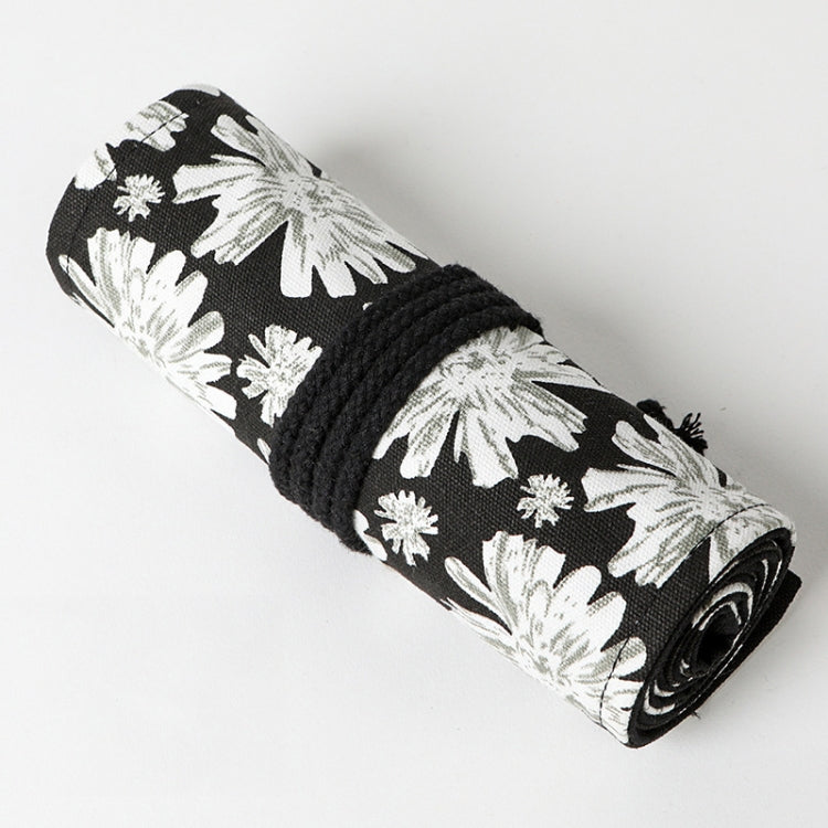 24 Holes Snowflake Print Handmade Canvas Pen Curtain Large Capacity Roller Pen Bag Sketch Color Pencil Stationery Box