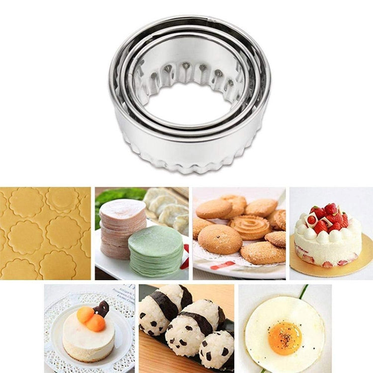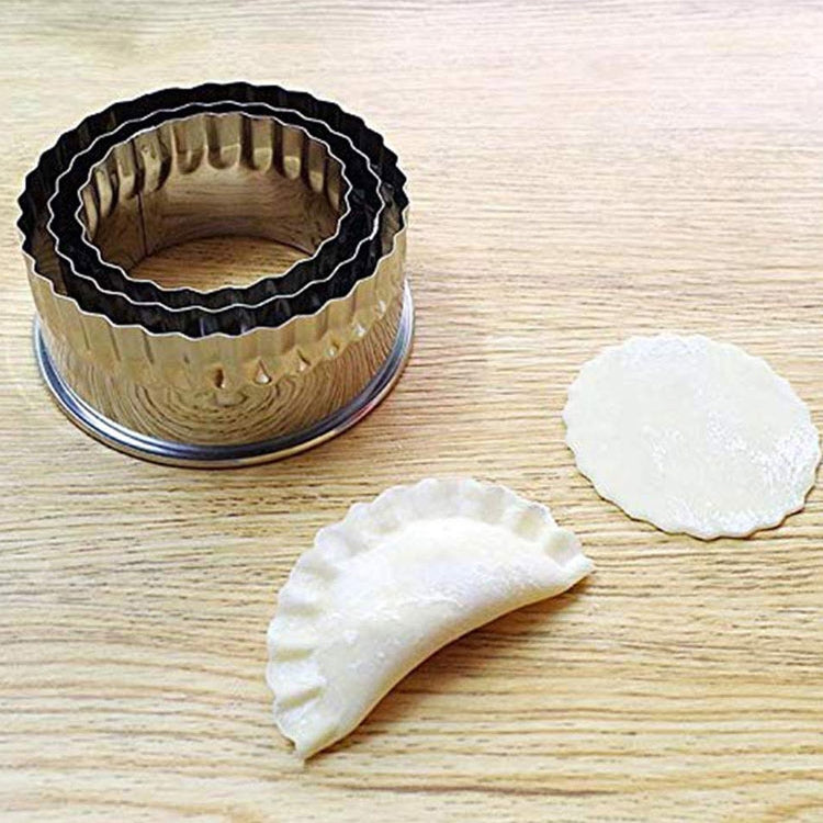3 PCS Stainless Steel Round Dumplings Wrappers Molds Set Cutter Maker Tools(Sawtooth)
